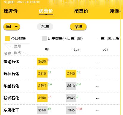 3、柴油价格会随时间波动,请定期查询以获取最新价格。